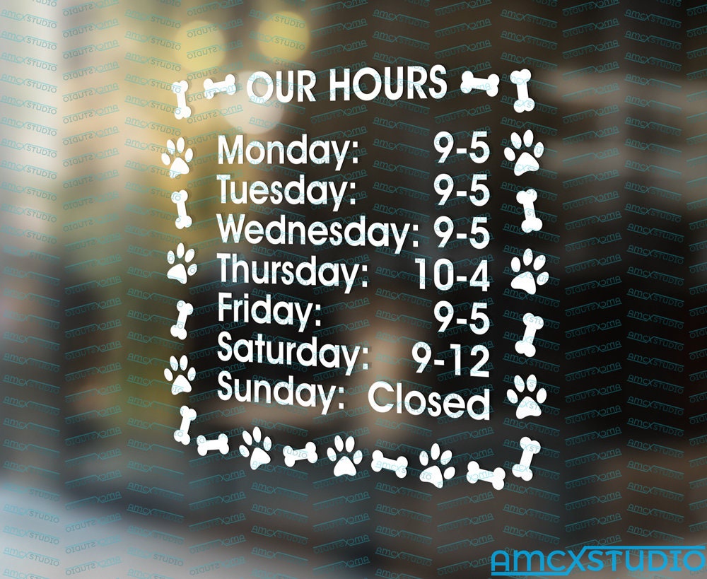 Custom Pet Store Business Opening Hours Window Vinyl Sign Personalize Times Ebay
