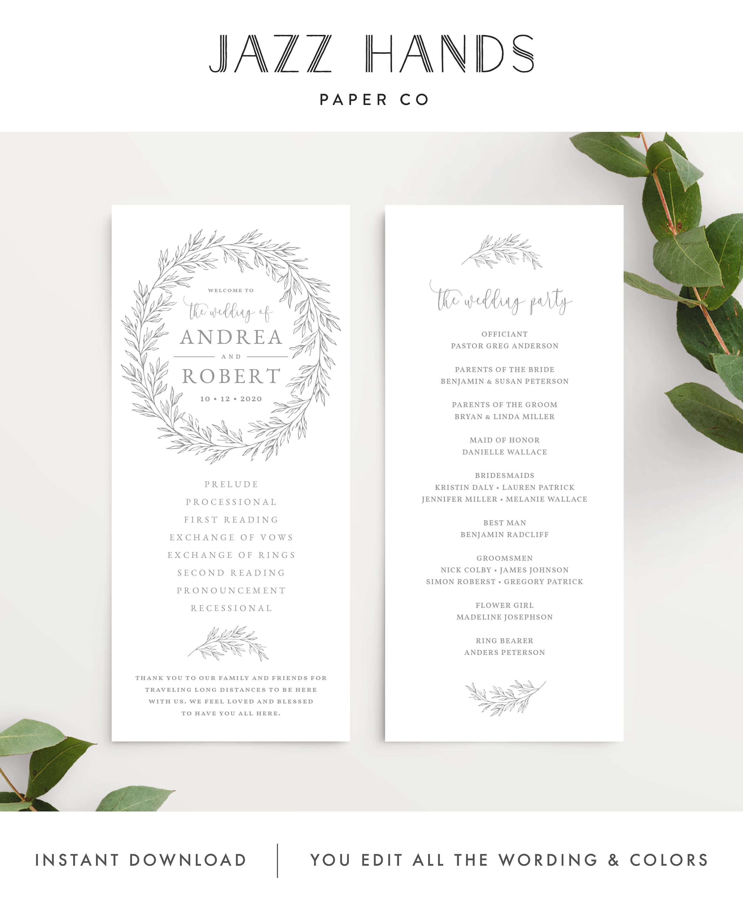 Wedding Program Template Wedding Ceremony Order Of Service Etsy